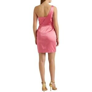 NEW Lauren Ralph Lauren Cocktail Dress Womens 8 Satin Pink One Shoulder Sheath