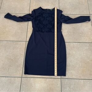 NEW Lauren Ralph Lauren Dress Lace Panel Back Zip Size 12 Wedding Guest Navy