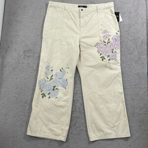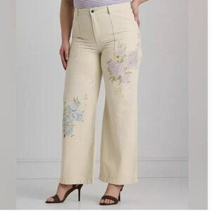 NEW Lauren Ralph Lauren Women's 22W Plus Size Floral Wide-Leg Jean Mascarpone