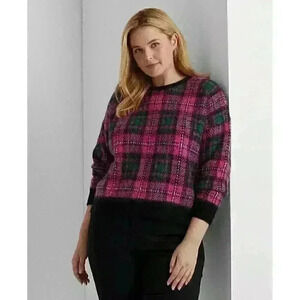NEW! Lauren Ralph Lauren Women's Plus 1X Plaid Wool-Blend Sweater NWT $195