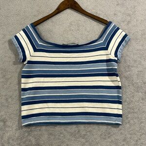 NEW Lauren Ralph Lauren Womens XL Striped Off-The-Should Multi color Crop Top