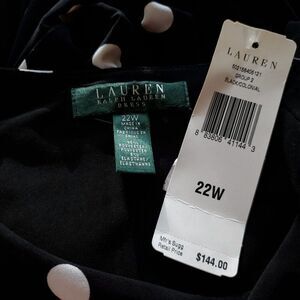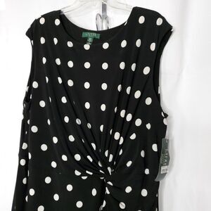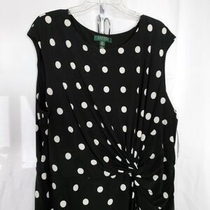 NEW Lauren Ralph Lauren Sleeveless Dress 22W Black White Polka Dot Faux Wrap