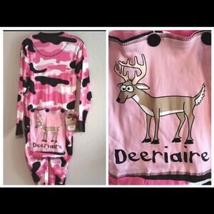 NEW Lazy One Pink Camo Deeriare 1 Piece Footless Trap Door Union Suit Unisex S