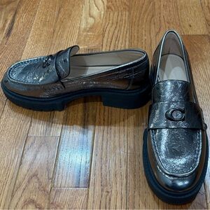 Only worn to try on! Shiny metallic loafers with a sleek design. Comfortable and stylish for any outfit.