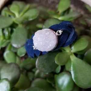 New, handmade navy leather and light pink/purple druzzy. No flaws. Would make a great gift!