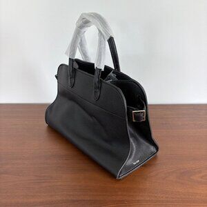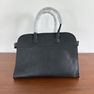 Softly structured top-handle bag in matte grained leather with belted gusseted side panels and interior toggle closure. Features a retro top-handle design with a spacious interior, making it perfect for work, travel, or everyday use. Durable, versatile, and stylish, it easily transitions from a professional office bag to a chic casual purse.