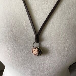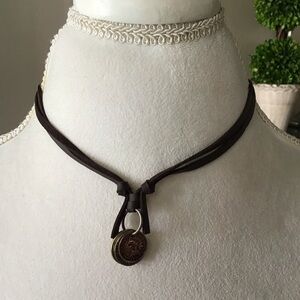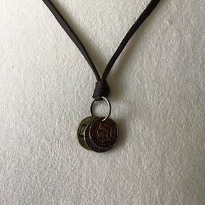 Leatherette Necklace 3 Faux Coins Surfer Boho Style Unisex Slide Adjustable NEW