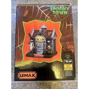 The product is a Lemax Spooky Town Halloween Village Grave Gardening accessory, part of the Spooky Town collection for Halloween. Made of resin, this seasonal-themed piece features a grave gardening character, perfect for adding a spooky touch to your Halloween village display. With a cabin subject and belonging to the character family of Spooky Town, this Lemax item captures the essence of Halloween and fall in a realistic and detailed design.