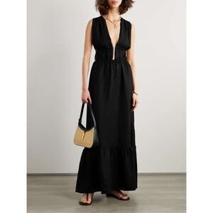 NEW Lemlem by Liya Kebede Women's Black Lelisa Ruffled Linen Maxi Dress Med NWOT
