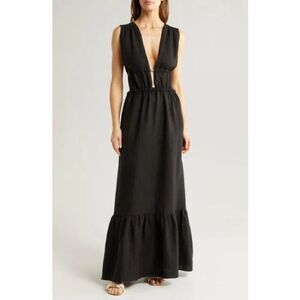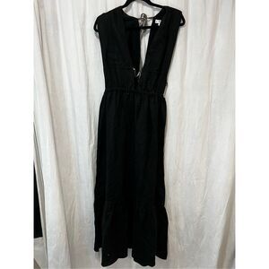 Lemlem by Liya Kebede Women's Black Lelisa Ruffled Linen Maxi Dress Medium NWOT