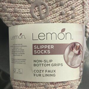 NEW Lemon Women's S/M Slipper Socks With Faux Fur Lining & Non-Slip Bottom Grips