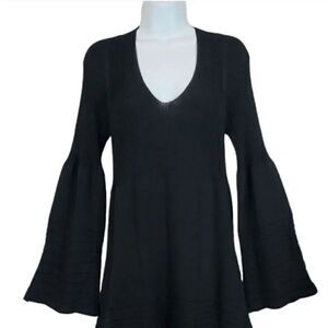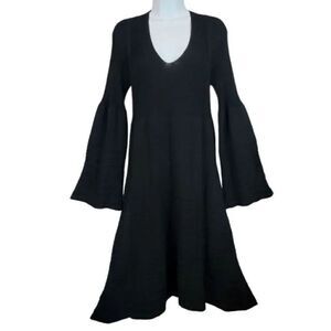 NEW Leon Max Limited Edition Bell Sleeve Knit Sweater Dress in Black Size Large