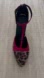 Chic leopard print heels featuring vibrant pink accents. Looks fabulous with jeans or add a pop of color to your favorite basic dress.