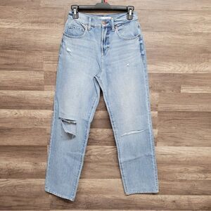 NEW Level 99 Road Trip 5PKT High Rise Straight Relaxed Jeans Blue Distressed 26