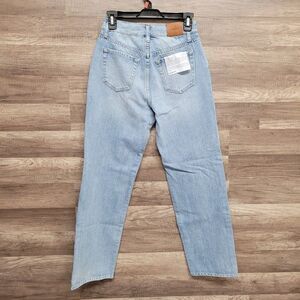 A vintage inspired 5pkt fit - TRUE straight leg with 30" inseam. High rise fit sitting right below natural waist, slightly relaxed down the straight leg. Crafted in an authentically worn-in light stone bleach destroyed wash.