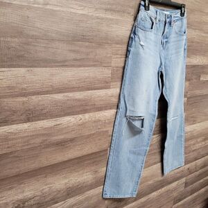 Level99 Road Trip 5PKT High Rise Straight Baggy Jeans Blue Distressed Womens 26