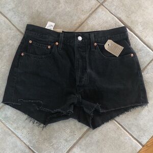NEW Levi’s 501 Black Jean Shorts Size 30 Distressed Frayed Hem High Rise Cotton
