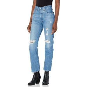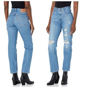 NEW Levi's 501 High Rise Straight Leg Distressed Blue Jeans, 29" x 30"