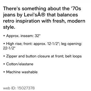 New with tags Levi’s 70’s High Rise Premium Flare Jeans. Distressed Stretch.