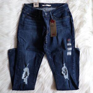 NEW Levi's 711's Dark Blue Skinny Distressed Denim Jeans Size 29 Mid Rise
