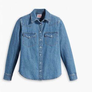 NEW Levi's Classic Fit Western Button Shirt In Stretch Denim XS