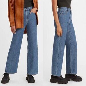 Levi's Jeans High Waisted High Rise Straight Leg Dark Blue Wash Denim