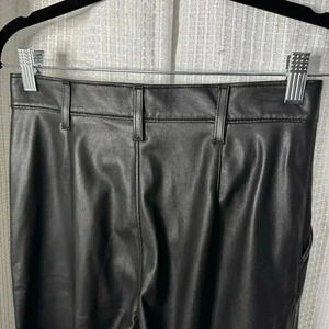 Crafted to fit a 25-inch waist with a little stretch and featuring a 27-inch inseam, these pants ensure a great fit for those who prefer their clothing to be both stylish and snug. The combination of a zip and button closure provides a secure and smooth fit around the waist, while the faux leather material offers a chic, cruelty-free alternative for the fashion-conscious individual.