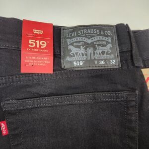 NEW Levi's Mens 519 Black Extreme Skinny Distressed Knee 5 Pocket Jeans 36x32