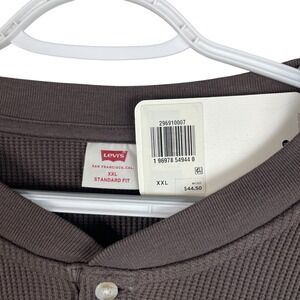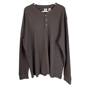 NEW Levis Mens Waffle Knit Thermal Henley Shirt 2XL Brown Standard Fit Stretch