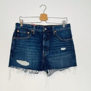 Raw hem and button fly, the Levi's 501 Short blends with your personal aesthetic for all-around wear. This pair is made of non-stretch denim with a substantial feel and true vintage look.