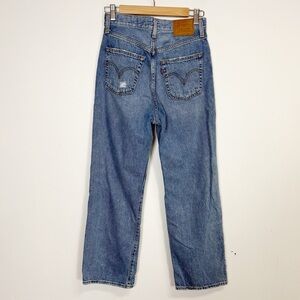 Levi's Ribcage Straight Ankle Jeans Womens 26 Blue Distressed High Rise Waist