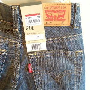 Brand new with tags and return sticker from Macy's. Levi's 514 Slim Straight Fit Jeans. Size 2T. Adjustable waist.