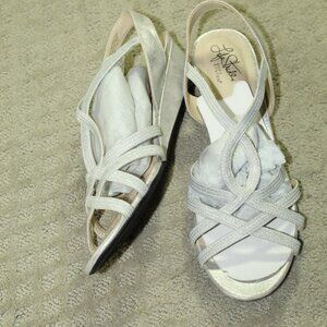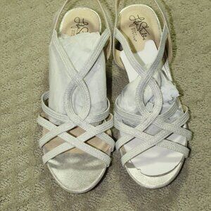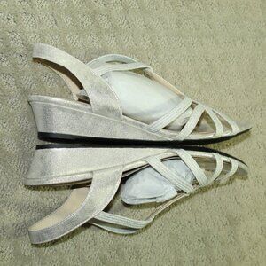 NEW Life Stride Women's 11M Silver Elastic Bling Wedge 1.5" Heels