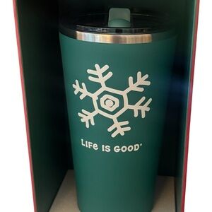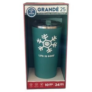 NEW Life is Good Green and White Snowflake Stainless Steel Tumbler with Straw