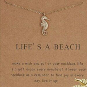 NEW “Life's A Beach” Seahorse Pendant Necklace w/ Quote & Card - Great Gift!