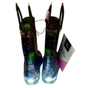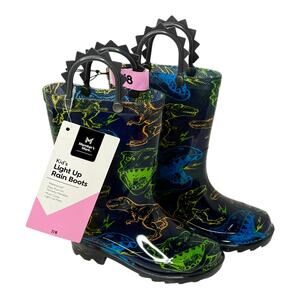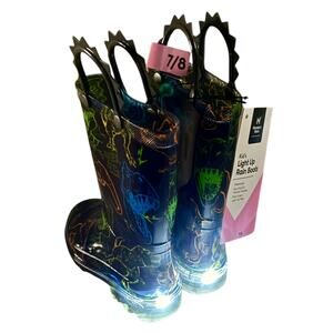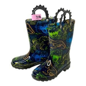 NEW Light Up RAIN BOOTS 7/8 Boys Kids Dinosaur T REX Rubber Boot Shoes Lights