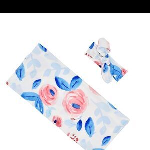 NEW Lightweight Baby Swaddle Receiving Blanket & Headband Set Stretch Jersey