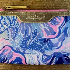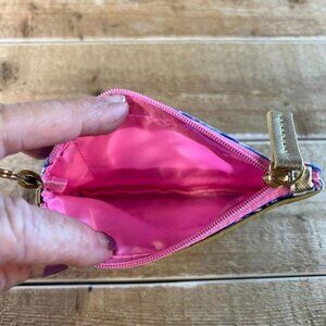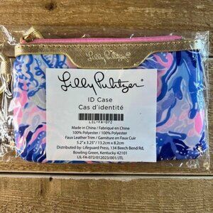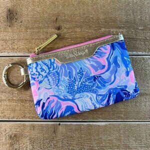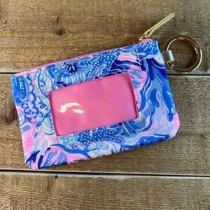 NEW Lilly Pulitzer ID Case Wallet Pink Blue Zip Gold Tone Keychain Card Holder