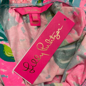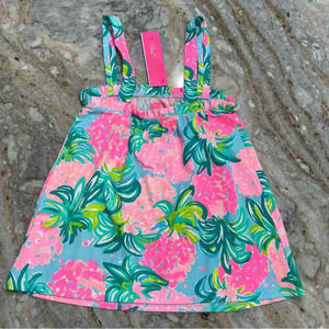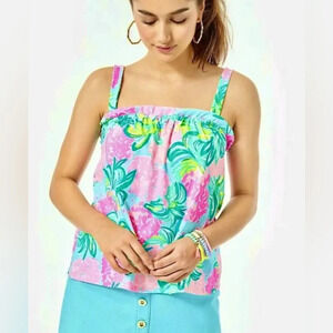 NEW Lilly Pulitzer Jia Tank Top Sz Pineapple Shake Blue Ibiza Floral Ruffle
