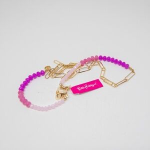 NEW Lilly Pulitzer Pink Stone Beaded Chain Link Eyeglasses Sunglasses Holder