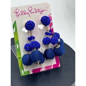 NEW Lilly Pulitzer SALSA COPA Clip On Statement EARRINGS Bright Navy Beaded Gold