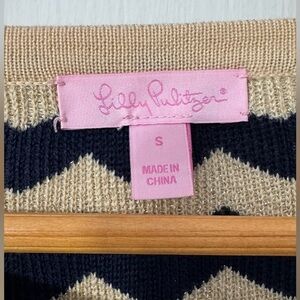 NEW Lilly Pulitzer Santana Dazzle Stripe Sweater Dress. Size Small - brand new and comes with a bonus belt! Pit to pit is 15”. Colors are gold and navy blue. Tag was removed from dress but belt still has tags.