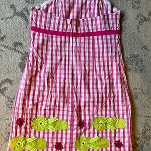 NEW Lilly Pulitzer Strapless Gingham Shift Dress with Flip-Flops Size 8