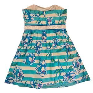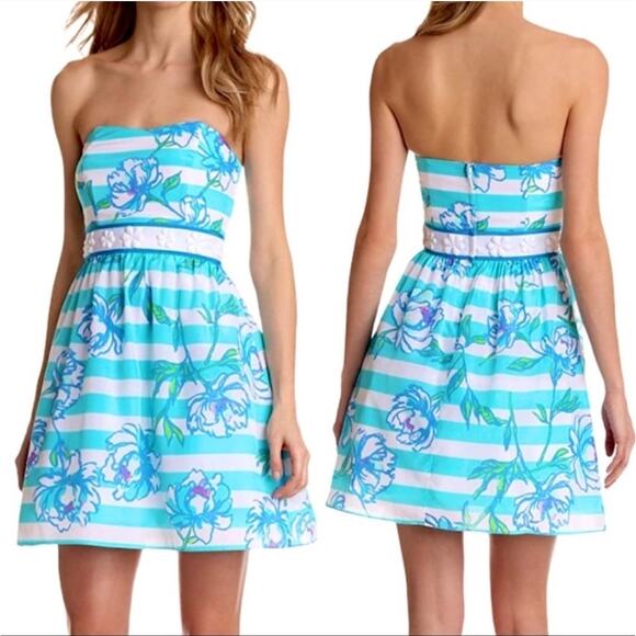 NEW Lilly Pulitzer Strapless Langley Dress Shorely Blue Tossing The Line Floral