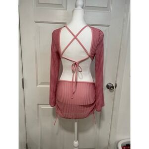 NEW Lilosy Pink Triangle Thong Tie Bikini Set Sexy Mesh Sheer Cover Up Lace Up S