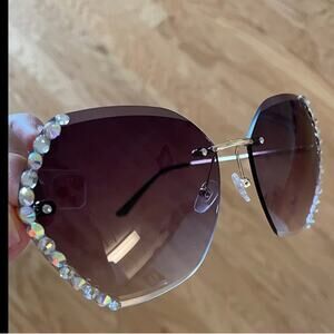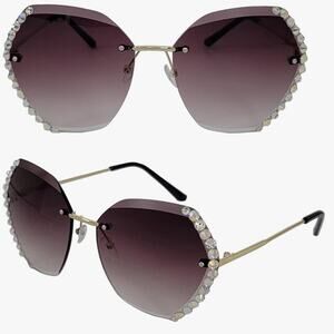 NEW Lily & Nunu Diamond Studded Oversized Gradient Coffee Tint Sunglasse…