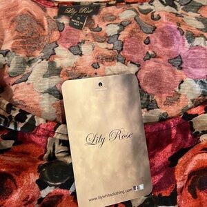 NEW Lily Rose Floral Rose Print Scoop Neck Blouse Small