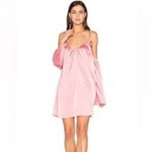 NEW Line & Dot REVOLVE Rampling Mini Babydoll Satin Pink Dress Cold Shoulder XS