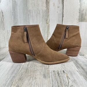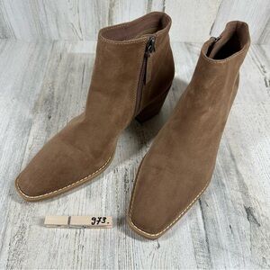 NEW Linea Paolo Brown Booties Boots Suede Side Zipper Block Heel #973