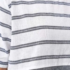 NEW Linen Blend Gray White Striped Short Sleeve Dress With Pockets SZ EU38 US6-8